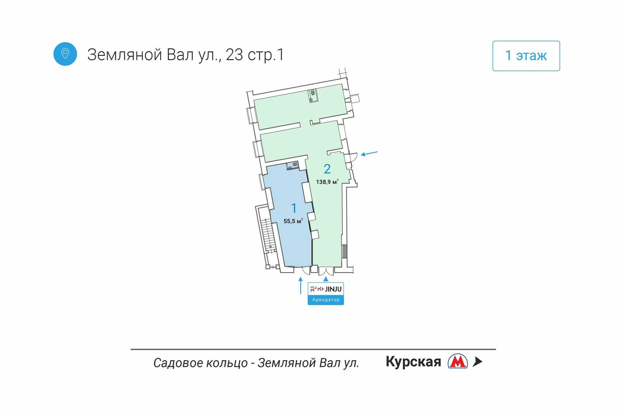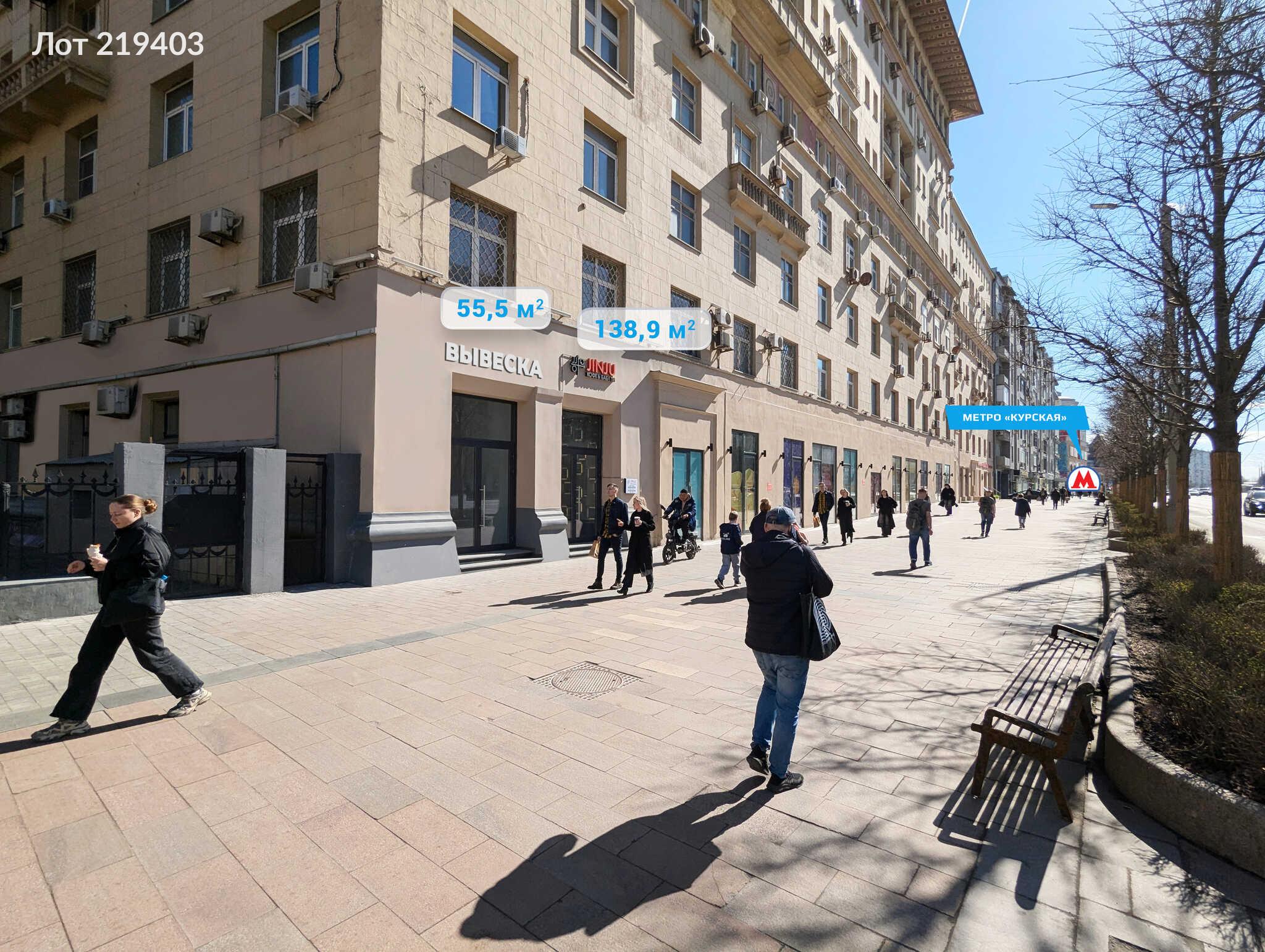 Лот № 219403 Предлагаются в аренду и на продажу помещения на улице Земляной Вал, ЦАО, г. Москва. Аренда и продажа помещений у метро. Шаговая доступность от ст. метро «Курская» — 1 минута пешком. Отличная пешеходная и транспортная доступность. Высокий рекламный потенциал и возможность размещения вывесок. Крупный деловой район с большим жилым массивом. В непосредственной близости расположены бизнес-центры, торгово-развлекательный центр «Атриум», бизнес-квартал «Арма», а также элитный жилой комплекс «Дом Chkalov». Продажа и аренда Street Retail помещений торгового или свободного назначения (ПСН) площадью от 55,5 до 138,9 кв.м на 1 этаже жилого здания. Планировка — открытая, перекрытия — ж/б, высота потолков — 4,2 м. Отлично подойдёт под любой вид деятельности: торговое помещение, магазин, ресторан, кафе, аптека, салон красоты, банк, офис продаж, кофейня и др.